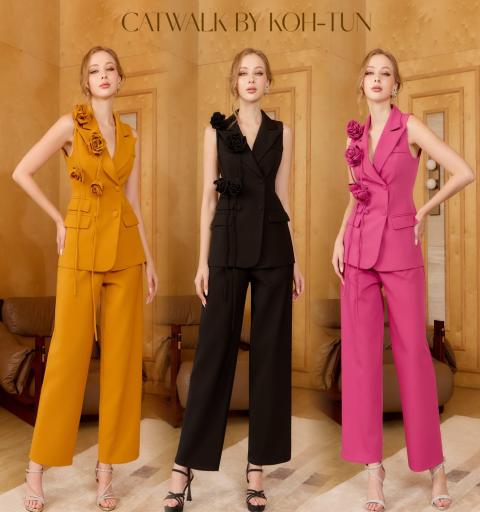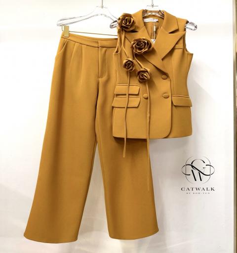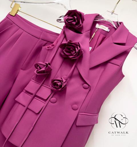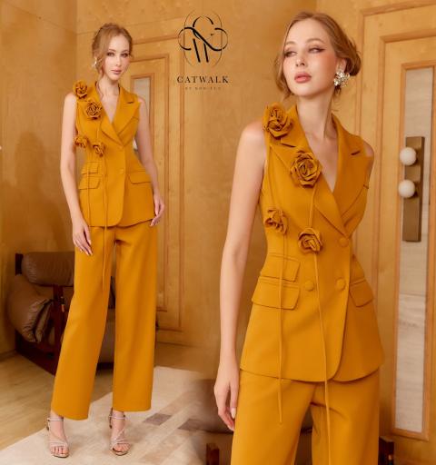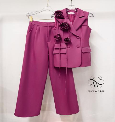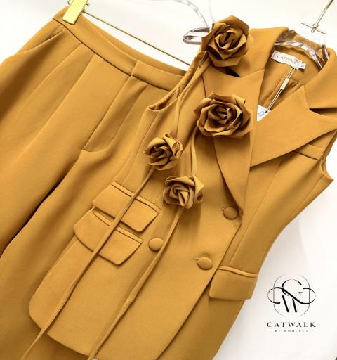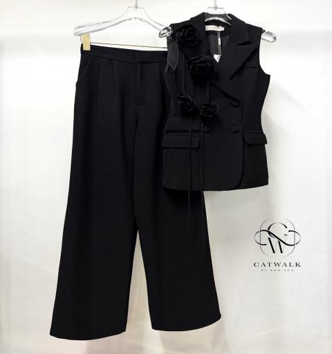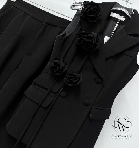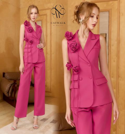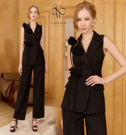 ชุดเซตBLAZERแขนกุด+เข็มกลัดดอกไม้+กางเกงทรงสวย