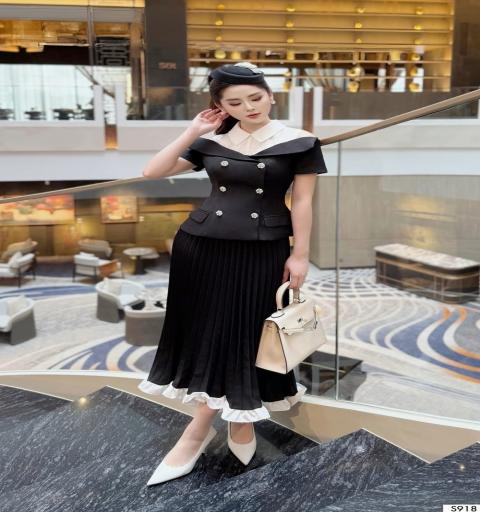 👗👗Detail : Set 2 ชิ้น เสื้อเบเซอร์แขนสั้นทูโทน คอปก ดีเทลแต่งเว้าไหล่ ช่วงอกเสริมฟองน้ำ ด้านหน้าแต่งกระดุมเพชรสลับมุกดอกไม้สองแถว (ซิปหลัง) แมทซ์กับกระโปรงยาวอัดพีท พริ้วๆ ปลายชายแต่งระบายขาว มีชับใน ซิปข้าง ใส่ออกมา ทรงสวย ดูดี luxury สุดๆ ห้ามพลาดนะคะ