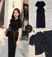 Set 2 ชิ้น สีดำคอกลม เสื้อแขนสั้น ดีเทลจับจีบช่วงแขนและชายเสื้อ