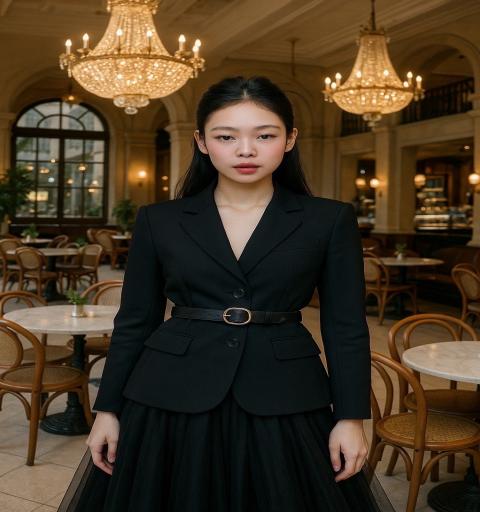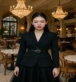 เซ็ตเสื้อสูทเบเซอร์ oversize ทรงเป๊ะ มาคู่กับกระโปรงฟูตังยาวสีดำ