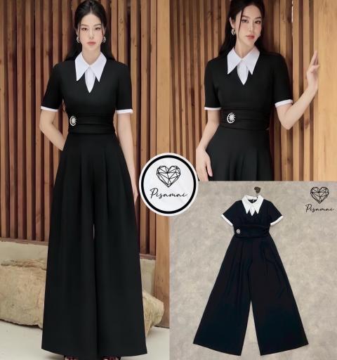 Detail :: เซ็ตเสื้อเชิ้ตแขนสั้นคอปกขาวดำ มาคู่กับกางเกงขายาวทรงกระบอก ใส่สวยมาก ช่วงเอวมีเข็มกลัดให้ครบเซ็ต ใส่เฟียสๆ แกรมๆ ได้ไม่ซ้ำใคร ต้องมีเลยค่า