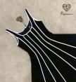 เดรสแขนกุดตัวยาวสีดำทรงบานแต่งลายเส้นสีขาวนูน