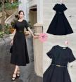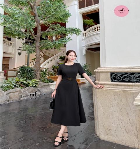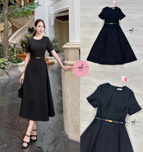 𝐃𝐞𝐭𝐚𝐢𝐥 : เดรสยาวคอกลมแขนสั้น สีดำเรียบหรู ทรงสวยเข้ารูปช่วงเอว ตัดเย็บเนี้ยบ ใส่แล้วดูผอมเพรียว พร้อมเข็มขัดหัวทองเพิ่มความหรูอย่างลงตัวกระโปรงทรงบานเล็กน้อย ช่วยพรางช่วงสะโพกได้ดี ใส่ได้ทั้งทำงาน ออกงาน หรือโอกาสสุภาพ