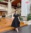 เดรสยาวคอกลมแขนสั้น สีดำเรียบหรู ทรงสวยเข้ารูปช่วงเอว