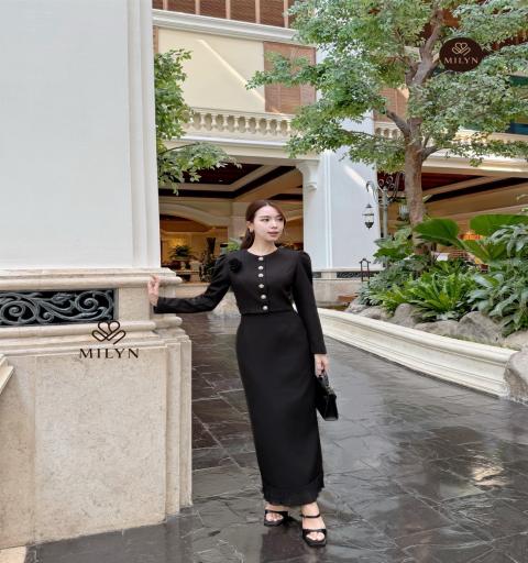 𝐃𝐞𝐭𝐚𝐢𝐥 : Set 2 ชิ้น เสื้อคอปแขนยาวสีดำแต่งด้วยกระดุมหน้าใช้งานได้จริง มาพร้อมกับกระโปรงยาวทรงเอแต่งระบายด้านล่างแหวกชายหลังชายกระโปรงซิปหลัง มาพร้อมกับเข็มกลัดดอกไม้สีดำใส่แมตช์กันกับชุดลงตัวดูดีมากค่ะ