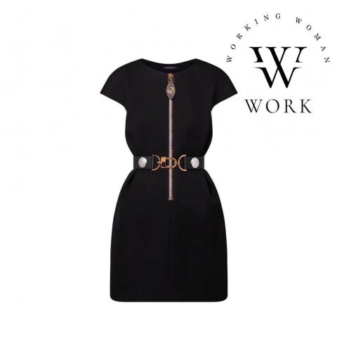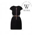 Louis Vuitton Ready to Wear Formal Dress เดรสสีดำแขนสั้นทรงแขนงุ้ม ตัดเย็บจากผ้าเนื้อดีหนานุ่ม เกรดพรีเมี่ยม แพทเทิร์น ซิปหน้าครึ่งตัว หัวซิปเป็นหนังลาย monogram ที่เป็น signature ของแบรนด์ ตัดต่อช่วงเอวเจ็วทวิสจับจีบช่วงเอว 2 ทวิส ทำให้เอวคอดมากขึ้น มาพร้อมเข็มขัดหนังเกี่ยวตะขอช่วงเอว ได้ลุคผู้ดีสไตล์ hi-end แบบสุดๆ กิมมิคเก๋ ใส่ทำงานคือดูดี่ะ