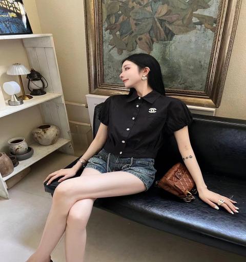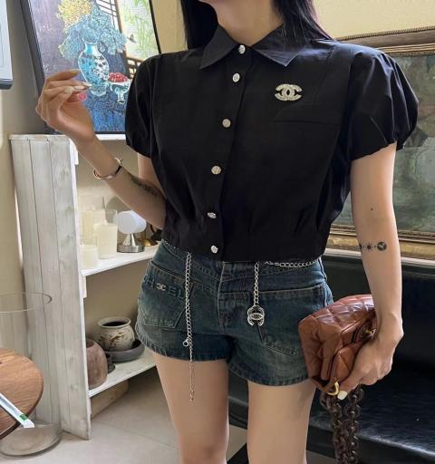 Brand: Chanel Detail :เสื้อเชิ้ตแขนตุ๊กตาคอปก ผ้าเชิ้ตเนื้ออย่างดี ผ้าดีมากๆ เย็บกระดุมChanelด้านหน้า มาพร้อมเข็มกลัดChanel ถอดได้ ใส่ทำงานได้เที่ยวได้ มาพร้อมป้ายคอ Chanel Tagครบสวยมาก งานคุณภาพ ห้ามพลาด จัดเลยจ้า
