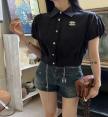 เสื้อเชิ้ตแขนตุ๊กตาคอปก ผ้าเชิ้ตเนื้ออย่างดี