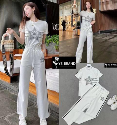 Brand: Christian Dior Detail :Setสุดคุ้ม เสื้อยืดแขนสั้น ผ้ายืดเนื้ออย่างดี ผ้าดีมากๆยืดได้เยอะ รีดเพชรลายChristian Diorวิ้งๆช่วงอก สวยโดดเด่นมากๆคร่า มาพร้อมกางเกงยาวเข้าชุด ช่วงเอวยืด ได้เยอะ แต่งกระเป๋า2ข้าง มีสายรูดเอว สวยโดดเด่นมากๆ ซื้อ1ได้ถึง2 มาพร้อมป้ายคอ Christian Dior Tagครบสวยมาก งานคุณภาพ ห้ามพลาด จัดเลยจ้า