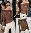เสื้อยืดแขนยาว ทรงเปิดไหล่เฉียง