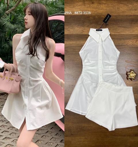 เซต3ชิ้น.. สีขาวแบบฉบับผู้ดี เสื้อคอปกกระดุมหน้า