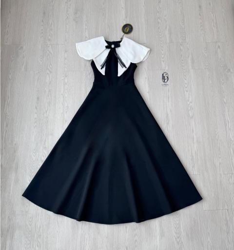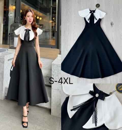 Detail : มีพลัสไซส์ ถึง 4XL นะคะ ชุดเดรสยาวสีดำ สีขาวดำทูโทน สะโพกวาย คอปกสีขาวมาพร้อมเข็มขัดสีดำถอดออกได้