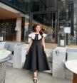 ชุดเดรสยาวสีดำ สีขาวดำทูโทน สะโพกวาย