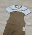 เสื้อ+กางเกงขายาว เสื้อดีไซน์ตัดต่อแต่งผ้ามีกิมมิค