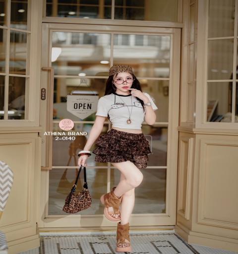 Tag 🔖 :Athena (อธีน่า) Brand Detail :: เสื้อ+กระโปรง เสื้อยืดคอกลมดีไซน์พิมพ์ลายน่ารัก แมตช์มาคู่กับกระโปรงลายเสือแต่งระบายเป็นชั้นๆ มีซับด้านในเป็นกางเกง สวมใส่แบบซิปด้านหลัง น่ารักปุ๊กปิ๊ก สามารถนำไปMix&Match ได้หลายลุคหลากสไตล์ค่า