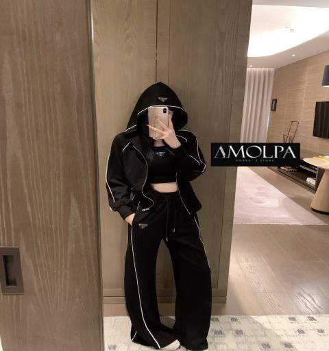 มาด้วยกัน 3 ชิ้น JACKET ซิปหน้า ฮู๊ดดี้ + กางเกงขายาว+ กล้ามครอป อย่างสวย