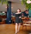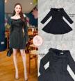 เดรสสั้นดีไซส์ปาดไหล่ปิดต้นแขนทั้งสองข้างแขนยาวแต่งปกช่วงปาดไหล่ ก