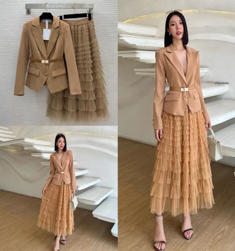 set Blazer+Skirt +เข็มขัด เสริมลุคสวยโดดเด่น ผู้ดีสุดดด