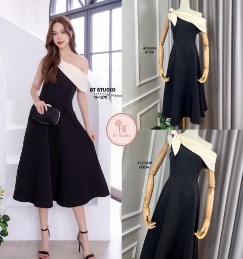 DETAIL : เดรสยาวคลุมเข่าไหล่เดียวดีเทลแต่งสายพาดสีครีมแต่งผูกไหล่ข้างเดียว อีกข้างปิดต้นแขน อกเอวเข้ารูป กระโปรงบานออก งานสวยเนื้อผ้าดีมีซับในค่ะ ซิปหลังจ้า