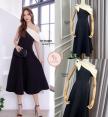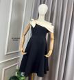 เดรสยาวคลุมเข่าไหล่เดียวดีเทลแต่งสายพาดสีครีมแต่งผูกไหล่ข้างเดียว