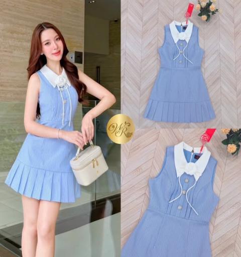Dress เดรสแขนกุด ปกคอสีขาว มีเข็มกัดดอกไม้ให้ 1 ดอก