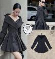 เดรสแขนยาวลายทางสีดำตัวสั้นทรงเปิดไหล่ซ้อน