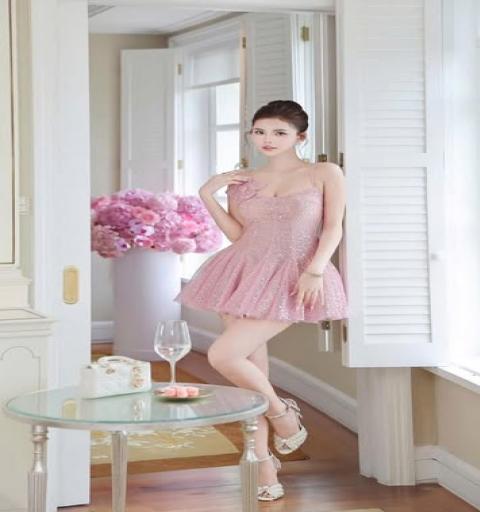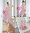 เดรสสายเดี่ยวสีชมพูหวานดีไซน์ปักเลื่อมทั้งตัวเพิ่มความประกายหรูหรา