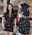 เสื้อคอปกดีไซน์เก๋ สีดำลายจุดสุดฮ๊อต ซิปด้านหน้า สามารถปรับรูดได้ทั้งบนและล่าง ดีเทลกุ้นเส้นด้านหน้าสวยเก๋ แขนตุ๊กตาตั๊กล๊าก ปลายแขนเย็บยืดหยุ่นอย่างดี ด้านหลังมัดผูกเอวสับ ซับในอย่างดีทั้งตัว