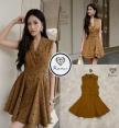 เดรสแขนกุดตัวสั้นลายจุดสีน้ำตาลpolkadot