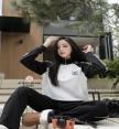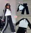 เสื้อ+กางเกงขายาว Set 2 ชิ้น เสื้อแขนยาวดีไซน์ด้านหน้าแต่งซิปและปักตัวอักษร