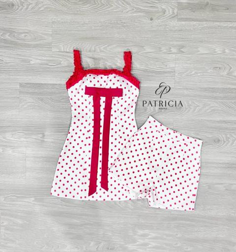 Set 2 ชิ้น มินิเดรสลายจุดแดง+กางเกงขาสั้น