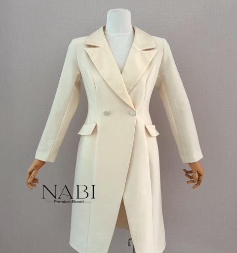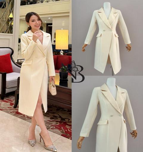เดรสสูทแขนยาว ดีไซน์ปกเงาเพื่อความหรูหรา กระดุมด้านหน้า