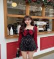 Set จั้มสายเดี่ยวกางเกงขาสั้น จับจีบย่นช่วงอก เนื้อผ้าพิมพ์ลายเนื้อดีผ้าหนาเป็นทรง