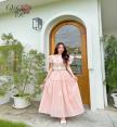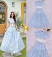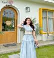 Set เสื้อแขนสั้นกับกระโปรงยาว คอเสื้อเย็บแต่งขอบระบายเล็กๆ