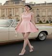 Dress เดรสสายเดี่ยว อกกุหลาบรีดเพชร กระโปรงทรงบาน ซิปหลัง เนื้อผ้าเรียบ