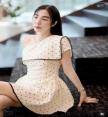 เดรสสุดน่ารักดีไซน์คอปาดแบบเฉียง + ลายจุดขาวดำสุดคลาสสิค ใส่ง่าย ใส่แล้วดูมีลุคชิคๆ หวานๆ ไม่ซ้ำใคร