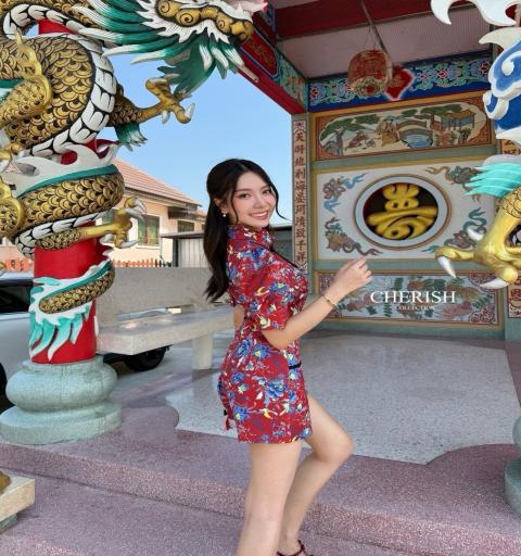 สาวหมวยต้องไม่พลาดชุดนี้ Set กี่เพ้าพิมพ์ลายดอกสุดเก๋