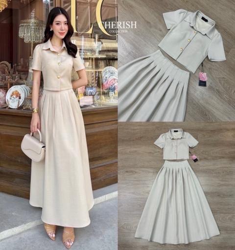 𝘿𝙚𝙩𝙖𝙞𝙡𝙨 :: งานมินิมอล สุดน่ารักเรียบหรูแต่ดูดีสุดด้วยชุด Set สุดน่ารัก ตัวเสื้อเป็นครอปตัวยาวคอปก ตกแต่งกระดุมทองมาพร้อมกระโปรงตัวยาวจับจีบใส่คู่กันแล้วน่ารักสุดๆไปเลยค่ะ