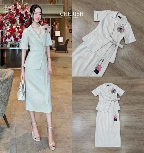 𝘿𝙚𝙩𝙖𝙞𝙡𝙨 :: ความลัคชูลุคใหม่ มาเสริฟแล้วค่า ตัวเสื้อคอปกแขนสั้นตกแต่งเข็มกลัดดอกไม้พร้อมเชือกพันเอว ตัวกระโปรงเอวสูงทรงสอบเข้ารูปใส่แล้วเสริมบุคลิกสุดๆต้องมีต้องตำนะคะ