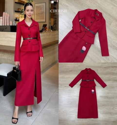 𝘾𝙃𝙀𝙍𝙄𝙎𝙃 ( เชอริช ) ราคา990 บาท 𝘿𝙚𝙩𝙖𝙞𝙡𝙨 :: เรียบหรูดูแพง กับชุดเซ็ท 3 ชิ้น ผ้าทวิต ตัวเสื้อแขนยาวคอปกตกแต่งกระดุมมาพร้อมกระโปรงเอวสูงตัวยาวผ่าข้างเพิ่มความคล่องตัวพร้อมซับในอย่างดี แถมเข็ดขัดเพิ่มความเก๋อีก จะใส่คุยงานก็ปัง ทานข้าวก็ดี ตัวแม่อย่างเราๆต้องมีนะคะ 𝙎𝙄𝙕𝙀 : โดยประมาณ (+ - 𝟭“) 𝙎 :: Bust 31-32"/ Waist 25-26"/ Hip 35-36” 𝙈 :: Bust 33-34"/ Waist 27-28"/ Hip 37-38” 𝙇 :: Bust 35-36 "/ Waist 29-30"/ Hip 39-40” 𝙓𝙇 :: Bust 37-38"/ Waist 31-32"/ Hip 41-42” 𝙇𝙚𝙣𝙜𝙩𝙝 :: Top 21” Skirt 36” 𝘾𝙤𝙡𝙤𝙧 :: Red |