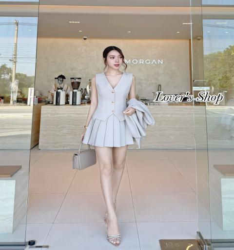 Set 3ชิ้น เสื้อสูท+เสื้อกั๊ก+กระโปรง สวยหรูดูผู้ดี ลุค CEOสาวท่านหนึ่ง
