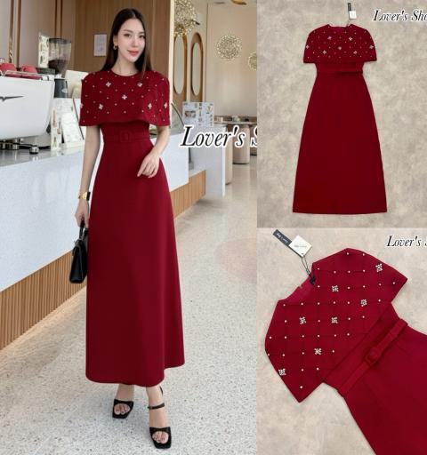 สวยหรู ลัคชูรี่ เป็นเดรสที่ใส่แล้วเสริมบุคคลิกสุดๆค้า ดีเทลเดรสคลุมไหล่ตกแต่งเพชร