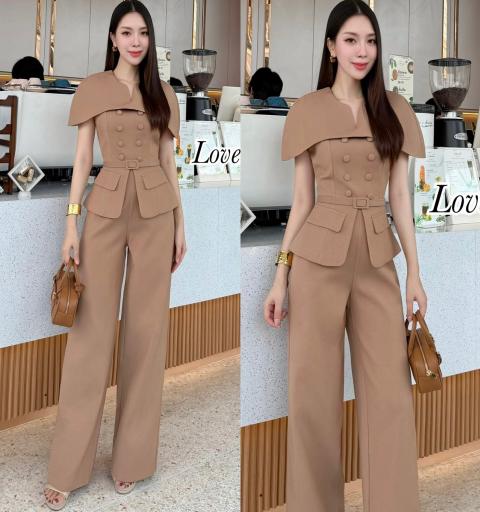 Set เสื้อ+กางเกง พร้อมเข็มขัด สวยยกเซ็ทค้า ลุคเรียบหรูดูผู้ดี