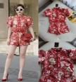 ชุดเซต 2 ชิ้น (เสื้อครอป + กางเกงขาสั้น) ทรงโมเดิร์นกี่เพ้า เสื้อคอจีนดีไซน์ร่วมสมัย