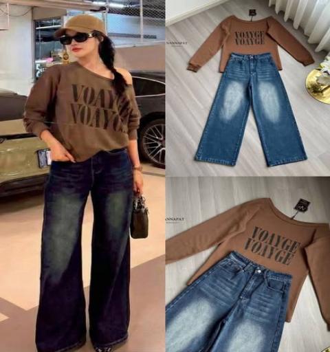 สวมเสื้อ VOYAGE ปาดไหล่ คู่กับยีนส์ฟอกทรงสวย