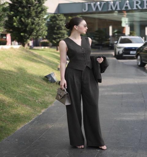 👗👗Detail : Set 3 ชิ้น เสื้อคลุมแขนยาวลายทางสีดำมีกระเป๋าหน้าใช้งานได้จริง มาพร้อมเสื้อกั๊กกระดุมหน้า แต่งกุ้นกระเป๋า แมทซ์กับกางเกงขายาวสีเดียวกันทั้งเซต กระเป๋าข้างใช้งานได้จริง ตะข้อหน้า ใส่แมทซ์กันสวย จบ ครบในเซตนี้ คุ้มสุดๆ ห้ามพลาดค่ะ