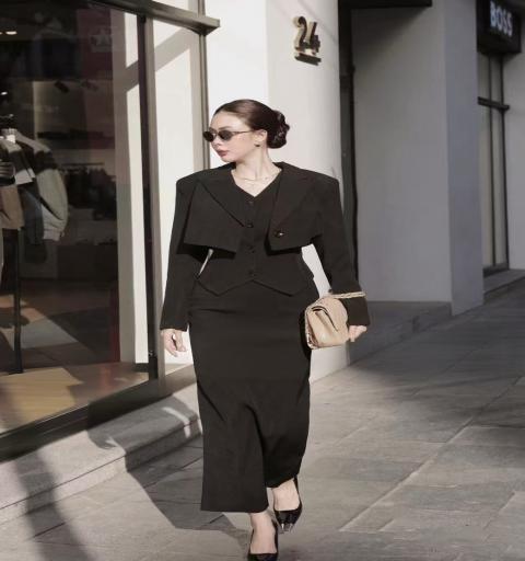 👗👗Detail : เซต3ชิ้น สีดำ เสื้อคลุมแขนยาวตัวสั้นมีกระดุมหน้า มาคู่กับเสื้อแขนกุดตัวในมีกระดุมหน้าเรียงยาว ดีไซน์สวย คุ้มสุดๆ มาพร้อมกับกระโปรงยาวทรงสอบ และดีเทลผ่าหลังดีไซน์สวย (มีซิปหลัง) เย็บซับในอย่างดี ทรงสวยแพทเทิร์นเป๊ะมาก