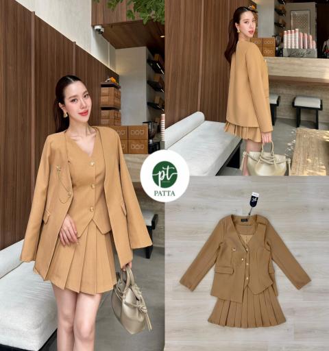 👗👗Detail : Set 4ชิ้น เสื้อสูท+เสื้อกั๊ก+กระโปรง+เข็มกลัด เสื้อคลุมสูทแขนยาวสีน้ำตาล ดีเทลแต่งกุ้นขอบกระเป๋า เสริมฟองน้ำบ่าบางๆเพื่อให้ทรงสวยขึ้น มาคู่กับเสื้อกั๊กแขนกุดสีเดียวกันแต่งกระดุมสีทองใช้งานได้จริง ( อกเสริมฟองน้ำ) มาพร้อมกับกระโปรงสั้นอัดจีบพลีทรอบตัวชายบานออกเล็กน้อย (ซิปข้าง และ มีซับใน) เพิ่มเข็มกลัดโซ่ผีเสื้อสีทอง ติดอกเก๋ๆ ดีไซน์สวย คุ้มสุดๆ ทรงสวยแพทเทิร์นเป๊ะ