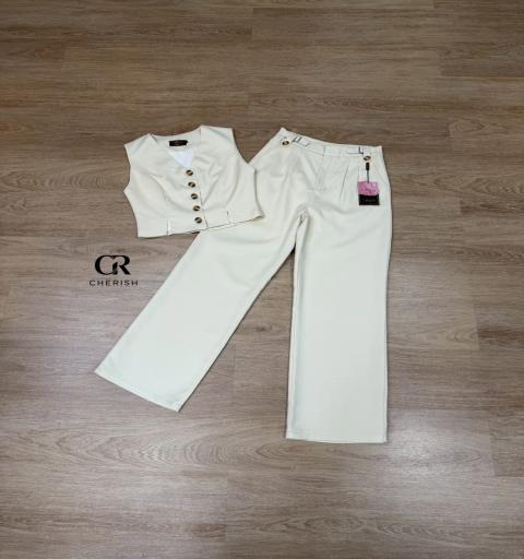 ชุดเซ็ท เสื้อกางเกง ตัวเสื้อคอวีเป็นเสื้อกั๊กแขนกุดแบบครอปทรงเข้ารูป