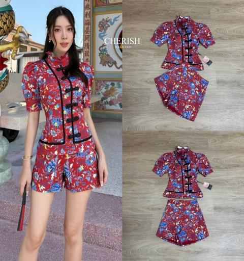 สาวหมวยต้องไม่พลาดชุดนี้ Set กี่เพ้าพิมพ์ลายดอกสุดเก๋ สุดคลาสสิค